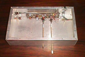 I omitted the antennas from this picture to save space. The long wooden rods have a similar function to the controls on the Etherwave. A commercial version of this instrument is also known as the Southwest Technical Products Corporation theremin. The San Antonio, Texas company sold it as a kit, which I never had access to, and wished I had, because my homebuilt was difficult to get to work. |