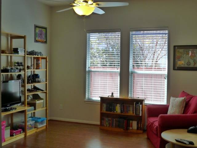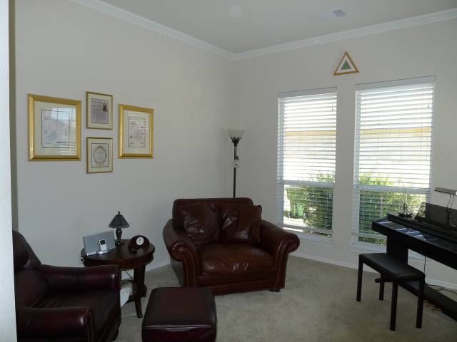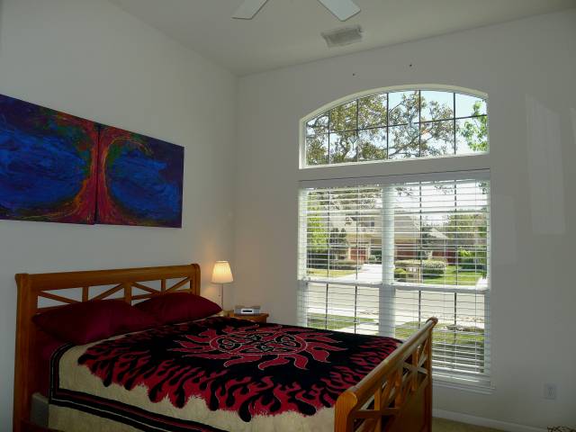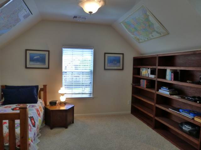 This bedroom works well as a private office or study |