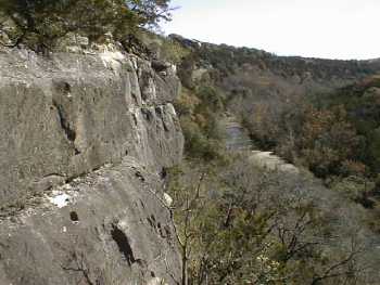 About halfway down, you can see the "great stone face" jutting out of the bluff.