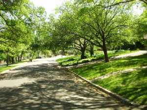 one of the prettiest neighborhoods in Austin. Note the shady tree-lined street. |