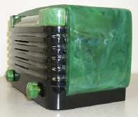 Having been attracted for years to colorful plastic radios, particularly Catalin, I decided to see if I could recreate one. The word "Catalin," as with Coke or Xerox, is a brand name that in the 1940s became a more universal name for colorful cast phenolic plastics used in radios, jewelry, and cookware. Catalin plastic can be opaque, translucent, solid colored or swirled. You can see examples of Catalin radios in the eBay auction images displayed at the bottom of this page.