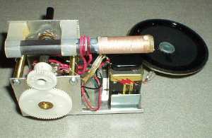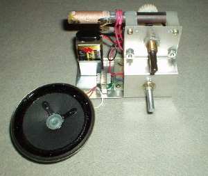Instead of an earphone, my build uses a Radio Shack 1000:8 ohm transformer connected to a 25 ohm speaker.