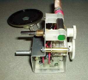 I've had the gears for years in my junkbox; they are from a defunct copier, and I intended to use them in part a of a telescope drive. Here they are configured as a fine tuning control. Because tuning capacitors only rotate 180 degrees, the 1:2 ratio also permits the dial numbers to be spread around the full circumference of the dial. |