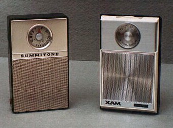 You can see another example of Summitone here. This XAM is a fabulous performer. It pulls in distant stations with ease, clarity, and it is LOUD. Who would think of a name like XAM? In electronic tech circles, "x" is shorthand for "trans," as in "xistor." How about shorthand for "Transam?" Or "Transistor AM?" Kind of punny, huh? Some Japanese
