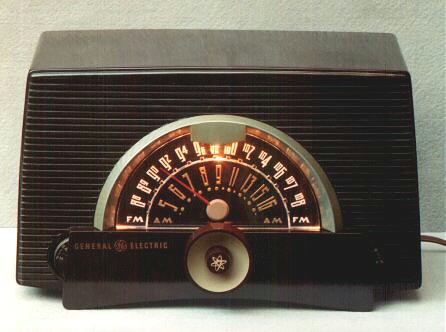 The lighted dial is one of the most handsome I've seen. The tone is lovely and warm, particularly on FM. The big center knob tunes the radio. The little brown knob in the middle is a tone control. When this radio was made in 1954, FM was only for highbrow music. My, how things have changed. A